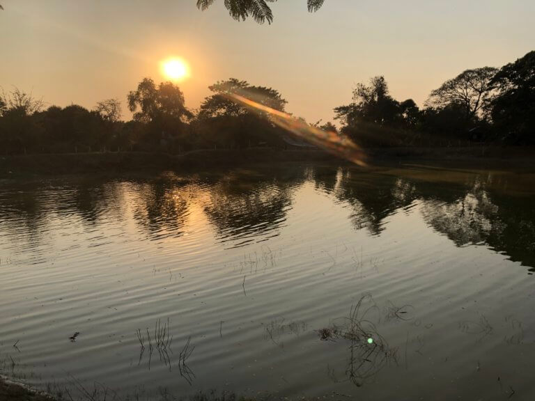 今朝、チャンミ瞑想センターを出発し、約7時間の移動を経て、山間部の寺院周辺エリアに到着しました。ここでは明日から4日間、インターネット接続が完全にない環境での滞在となります。