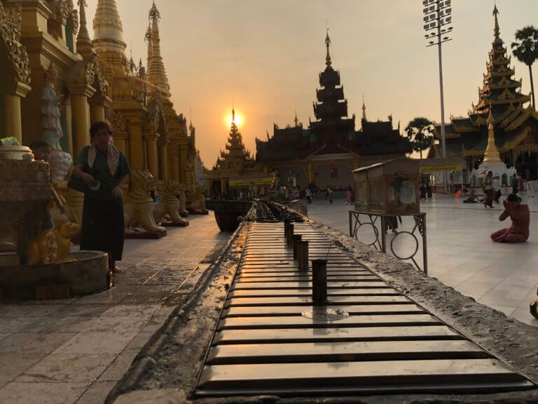 ヤンゴン到着後は、定点観測としてシェダゴンパゴダへ。 現地の経済状況の変化は著しく、拝観料はコロナ前の8,000チャットから25,000チャット(約2,000円)へと約3倍に高騰しています。こうした社会情勢の変化は、現地の人々のメンタルヘルスや身体的な緊張度にも影響を与える因子であり、今後も注視が必要です。
