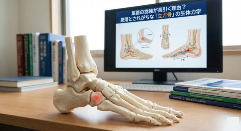 スポーツ現場で頻発する足関節の内反捻挫。靭帯の修復が終わっても「踏み込み時の違和感」や「足の外側の痛み」が長引く場合、足のアーチを構成する「立方骨」のサブラクセーション(関節のズレ)が疑われます。本コラムでは、名古屋駅前で長年スポーツ障害の臨床と研究に携わる榊原直樹(スポーツ医学博士/D.C.)が、アスリートの競技復帰を阻む「立方骨症候群」のメカニズムをバイオメカニクス(生体力学)の観点から紐解きます。
