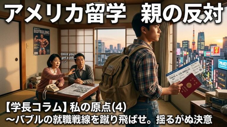 【学長コラム】私の原点(4)〜バブルの就職戦線を蹴り飛ばせ。アメリカ留学への親の反対と揺るがぬ決意〜